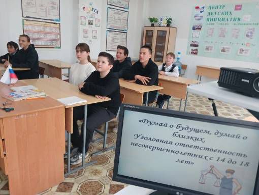 В рамках регионального интерактивного проекта правового воспитания детей и молодёжи "Молодёжь вправе" советник директора по воспитанию Федотова Е.В. и учитель истории и обществознания Морозова Е.А. провели очередное профилактическое занятие на тему: «Думай о будущем, думай о близких. Уголовная ответственность несовершеннолетних с 14 до 18 лет».