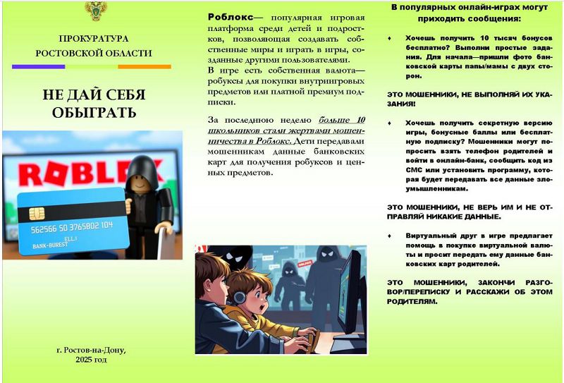 Ребятам объяснили, что злоумышленники используют онлайн-игры, такие как Роблокс и Страж королевства, для обмана детей. Они создают виртуальные аккаунты и пишут сообщения, предлагая бесплатные бонусы или ценные предметы на игровой платформе. Чтобы получить их, детей просят отправить фото банковских карт родителей. Преступники, получив эту информацию, крадут деньги со счетов родителей. В случае, если дети расскажут родителям о произошедшем, мошенники угрожают сообщить в полицию. Ученики сделали вывод, что лучше избегать этих игр. Классные руководители рассказали ребятам о многочисленных случаях мошенничества и способах противостояния им.