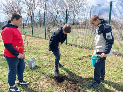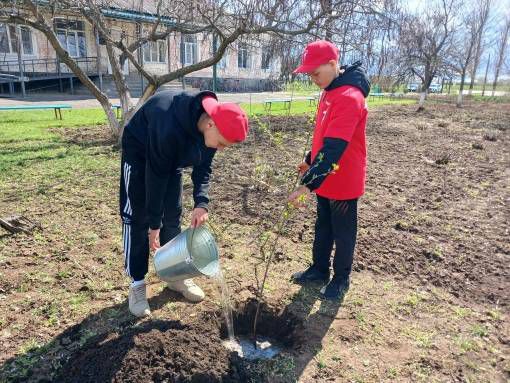 В этот день все обучающиеся нашей школы приняли участие в Акциях «Дерево жизни» и «Парк поколений». Ребята посадили фруктовые и декоративные деревья, цветы на клумбу.