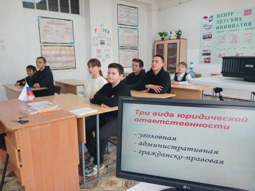 В рамках регионального интерактивного проекта правового воспитания детей и молодёжи "Молодёжь вправе" советник директора по воспитанию Федотова Е.В. и учитель истории и обществознания Морозова Е.А. провели очередное профилактическое занятие на тему: «Думай о будущем, думай о близких. Уголовная ответственность несовершеннолетних с 14 до 18 лет».