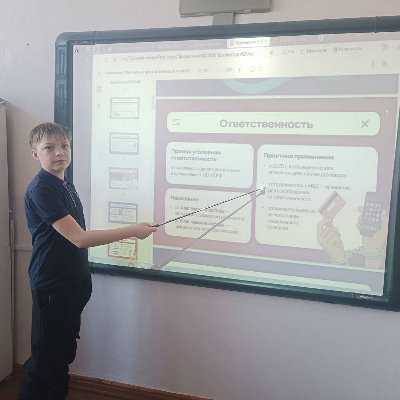 Учащиеся познакомились с основными угрозами, связанными с использованием искусственного интеллекта в финансовой сфере. Были рассмотрены примеры мошенничества с использованием ИИ, а также способы защиты от таких угроз. Особое внимание было уделено проблемам дропперства, телефонного и интернет -мошенничества и приёмам защиты от этих действий.