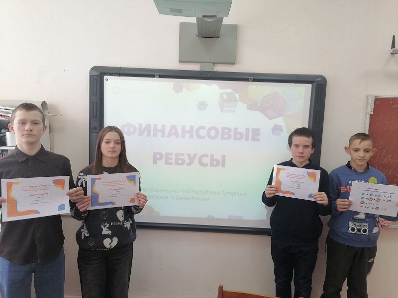 17 февраля среди учащихся 7 - 9 класса была проведена интерактивная игра «Финансовые ребусы». Ребятам было предложено 4 интеллектуальных раунда: «Ребусы»; «Что за слово?»;«Найди лишнее…»;«Математическая задача». Игра проводилась индивидуально, каждый участник отвечал сам за себя. Учитель демонстрировал слайд, задавал вопросы, а участники игры старались ответить не только быстро, но и правильно. Задача учащихся заключалась в том, чтобы дать как можно больше правильных ответов. Правильные ответы заносились в турнирную таблицу. По окончании игры были подведены итоги. Победители и участники получили сертификаты.