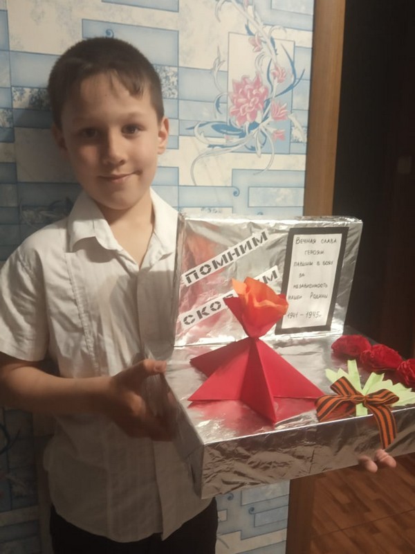 15 мая 2020 года дистанционно прошел конкурс поделок. Учащиеся начальных классов представили свои работы. Поделки выполнены с большой любовью и трепетом, как дань уважения Героям-Освободителям!