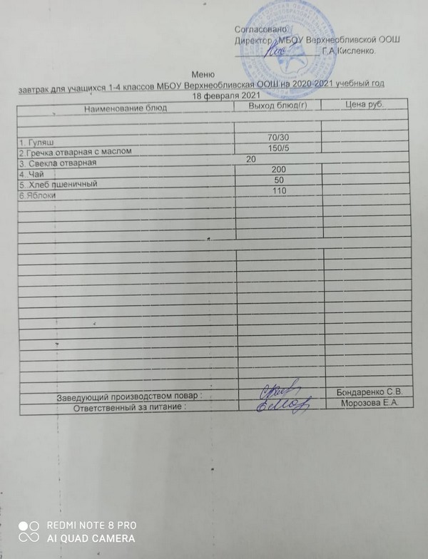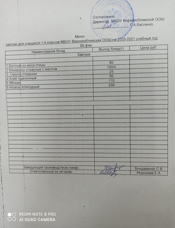 Меню ежедневного горячего питания