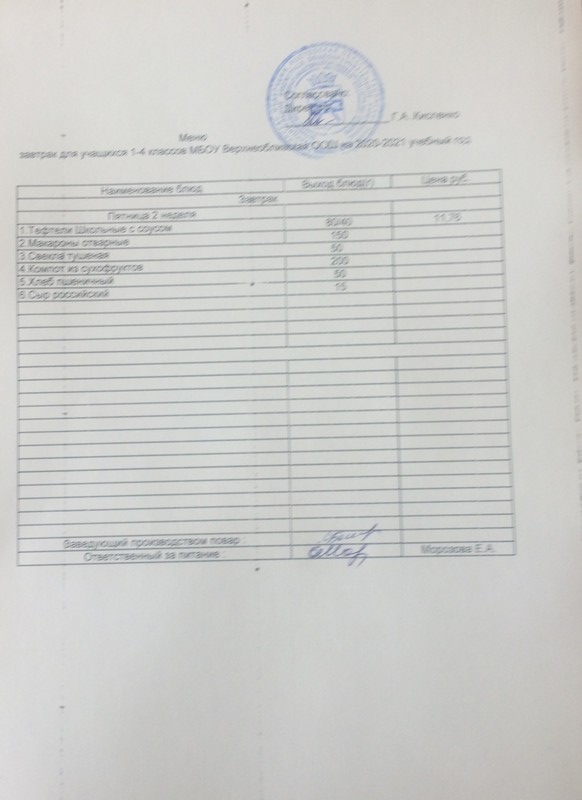 Меню ежедневного горячего питания