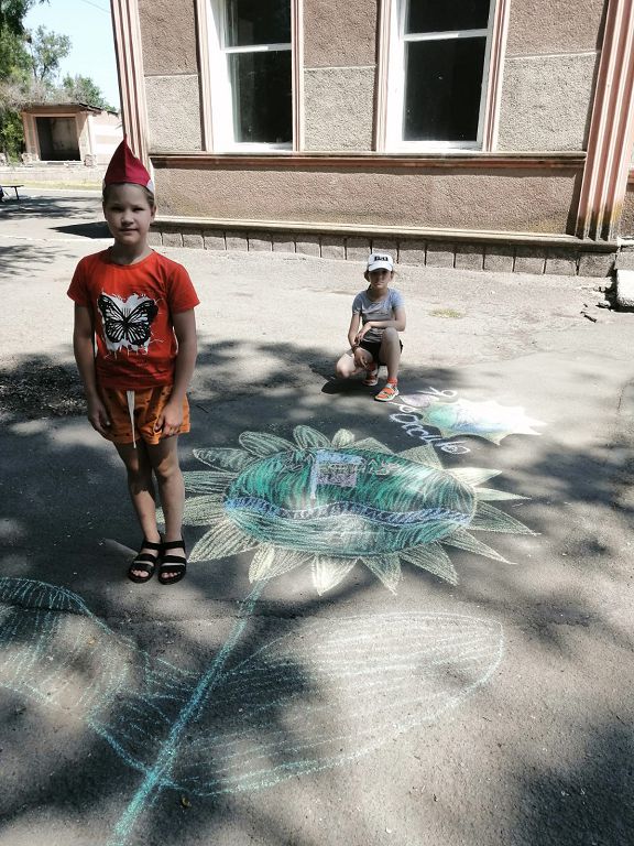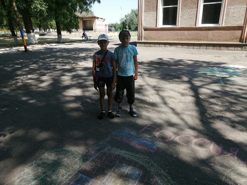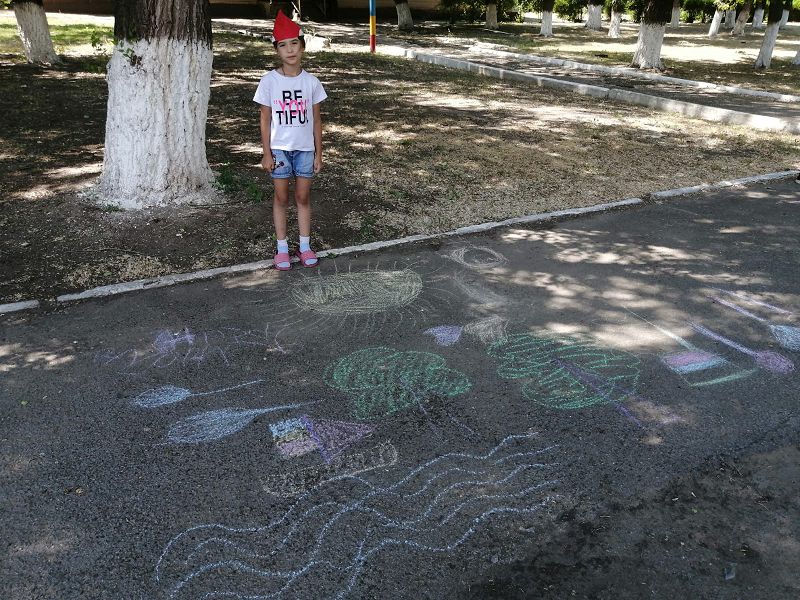 Потом мы плотно позавтракали и отправились в СДК . !» Работники культуры организовали и провели с нами конкурс рисунков на асфальте в рамках празднования 85- летия Ростовской области «Здесь край мой, исток мой, Отчизна моя!». Ребята с энтузиазмом , желанием и хорошим настроением принялись рисовать каждый свой рисунок. Асфальт для нас в этот момент стал большим полотном для творчества. За участие в конкурсе все ребята получили подарки.
