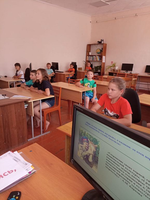 Когда мы пришли в лагерь, то сразу же окунулись в новое мероприятие. Мы посмотрели познавательную презентацию «Край Донской!» В ходе презентации мы познакомились с флорой и фауной Донского края, традиционной одеждой казаков, обычаями и традициями донских казаков.