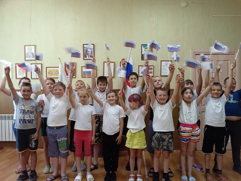 Очередной тематический день в лагере посвятили нашей стране. Главными мероприятиями дня стали: беседа «Символы России», просмотр презентации «Моя Россия-моя страна».