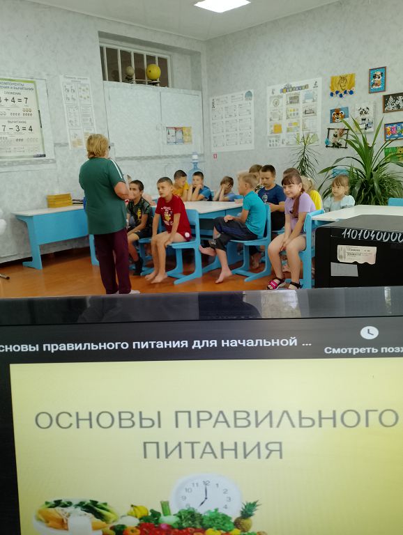 Традиционно день начался с построения и зарядки. После зарядки ребята отправились на минутку здоровья «Основы правильного питания», где они стали не только зрителями, но и участниками.
