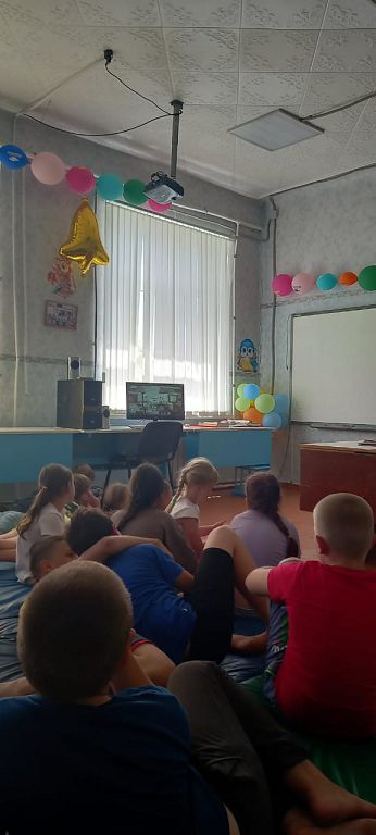 Пообедав и немного отдохнув, ребята посмотрели мультфильм «Незнайка и его друзья», а затем прошла интеллектуальная игра «Знайка и Незнайка в гостях у Почемучек».