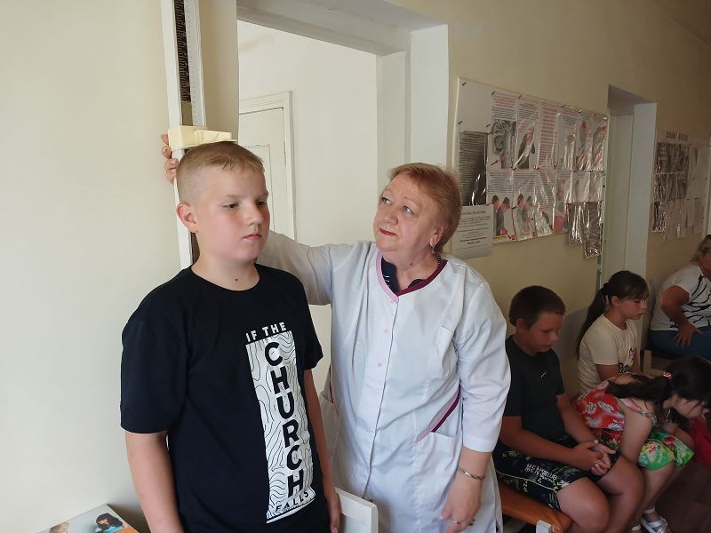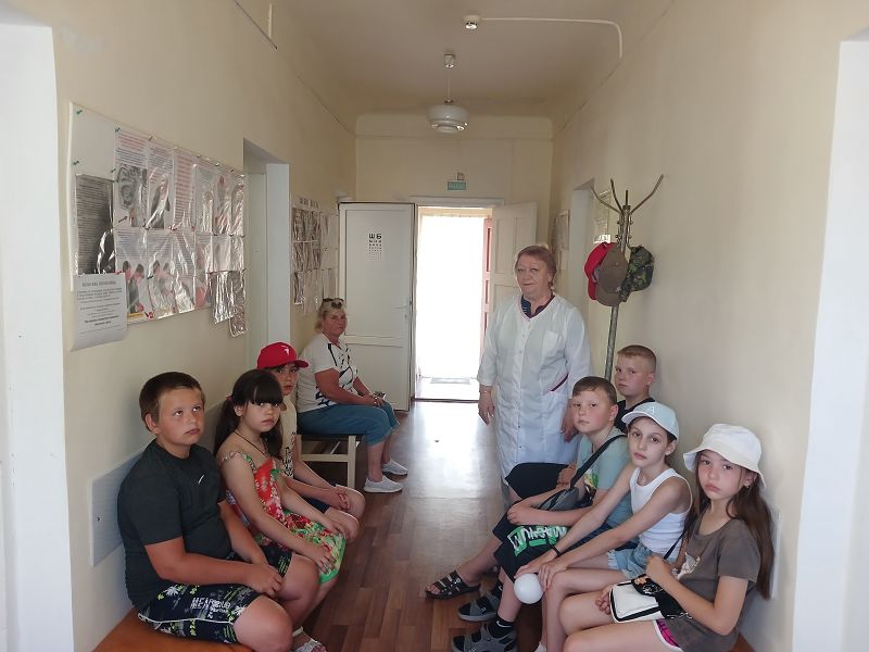 Вооружившись кепками, все отправились в сельский ФАП, где ребятам измерили рост и вес.