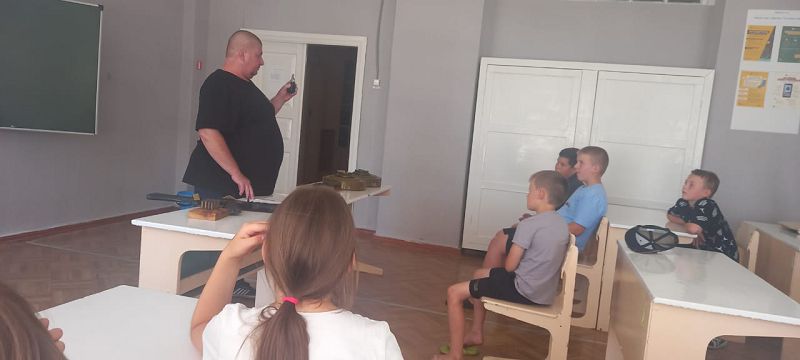 После игры мы отправились на занятие «Ознакомление с видами боеприпасов, используемых в современных боевых действиях». Нашим мальчикам это занятие очень понравилось, у них была масса вопросов, и они попробовали выполнить неполную разборку автомата Калашникова.
