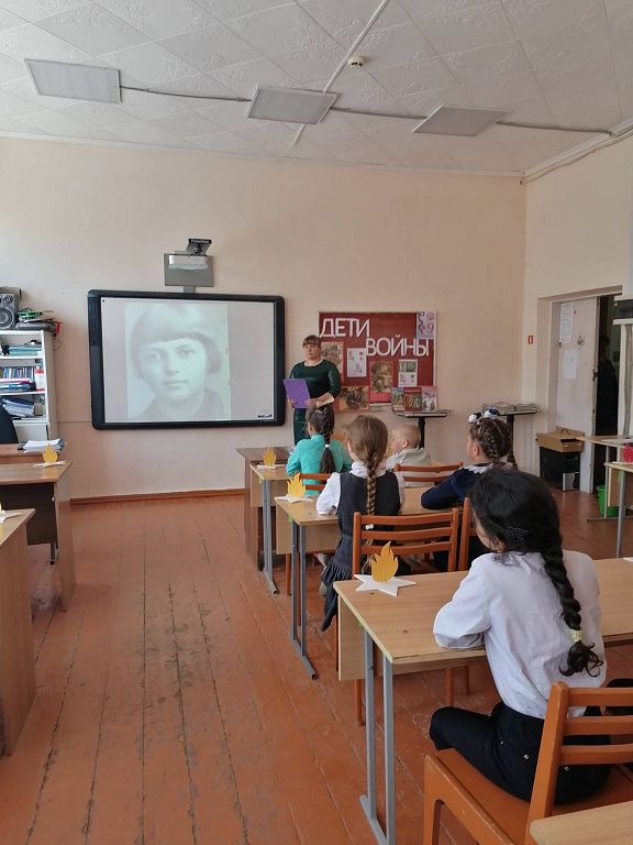 Анна Александровна дала информационный лекторий о подвигах юных героев. Она рассказала о таких пионерах-героях, как Зина Портнова, Марат Казей, Александр Чекалин, Леня Голиков, Володя Дубинин, Вася Коробко, а также вспомнили о подвиге пионеров-героев Гриши Волкова и Феди Игнатенко. В конце лектория ребята почтили память минутой молчания.
