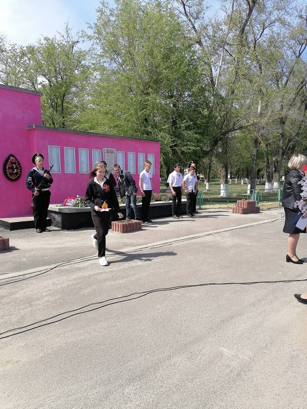 На линейке памяти учащиеся школы возложили к мемориалу погибших воинов- земляков гирлянду, сирень и маленькие свечи. Гирлянда из еловых веток как символ Мира мертвых охраняют покой умерших...Сирень - это символ весны, светлого праздника,это память о тех, кто защитил нашу страну в Великой войне, это символ Победы! В мае 1945 года советских воинов-освободителей, возвращавшихся домой, везде встречали ветками сирени.Свечи - это частица Вечного огня, сделанные руками учащихся.