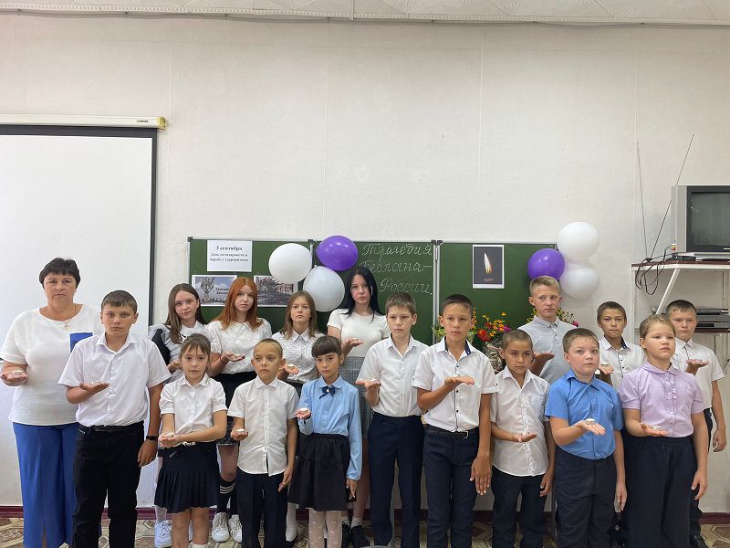 2 сентября, в преддверии Дня солидарности в борьбе с терроризмом, в школе прошел ряд мероприятий, посвящённых памятному дню "Трагедия в Беслане". Акция "Свеча памяти", патриотический час «Трагедия Беслана», темой которой стали трагические события 1 сентября 2004 года, произошедшие в Бесланской школе. Обучающиеся, преподаватели вспомнили и почтили память всех погибших.