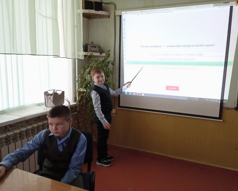 Младшие школьники – «Мама-главное слово в нашей судьбе», «Материнское сердце чаще бьется», посмотрели видеоматеиал о празднике, познакомились с его смыслом и символикой, выполнили интерактивные задания.