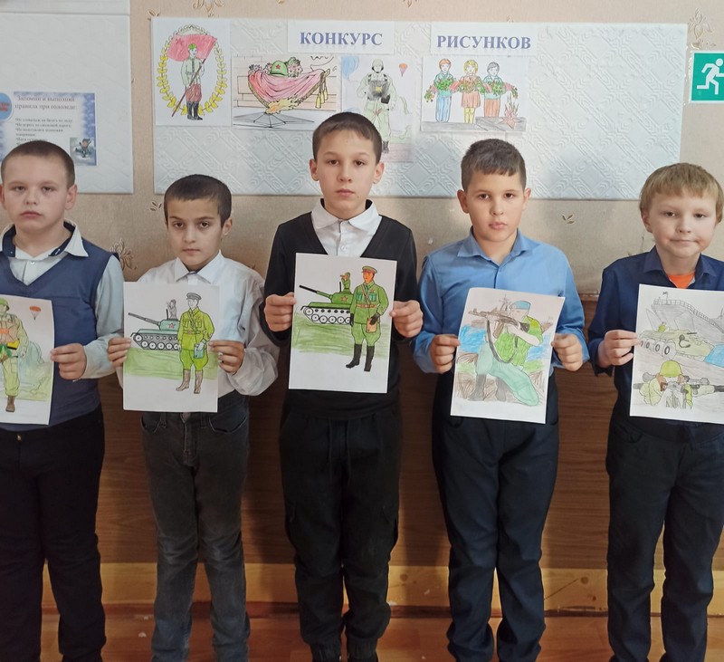 Учащиеся 1- 4 классов приняли участие в выставке рисунков «Я – русский солдат!».