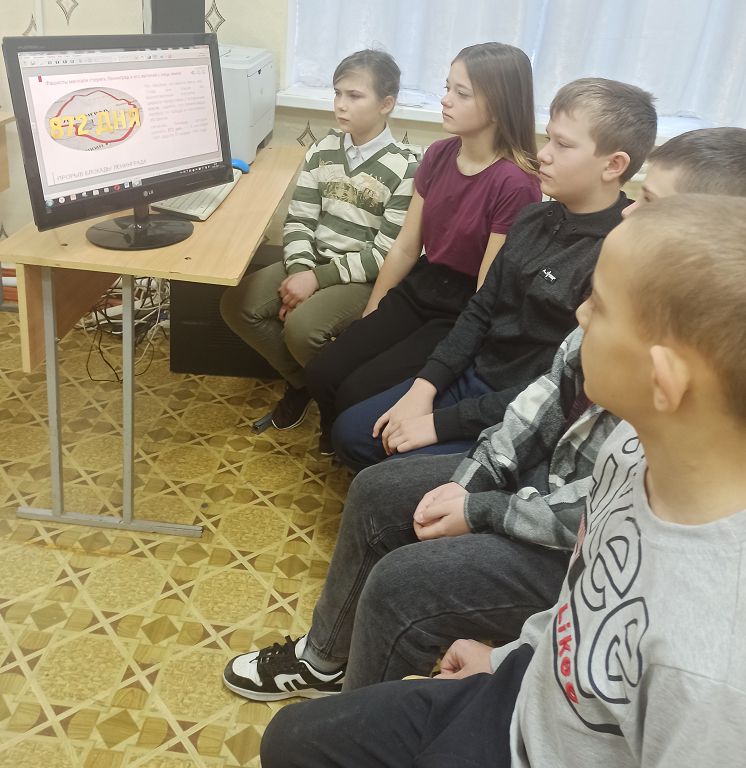 Учащиеся ознакомились с кадрами документальной кинохроники, фотографиями той поры. Никого не оставил равнодушным рассказ о мужестве участников обороны и жителей города на Неве. Одним из самых трогательных моментов классного часа стал просмотр дневника ленинградской школьницы Тани Савичевой, у которой сначала погибла вся семья, а потом и она умерла от истощения. В сердцах ребят надолго останутся герои блокадного Ленинграда.