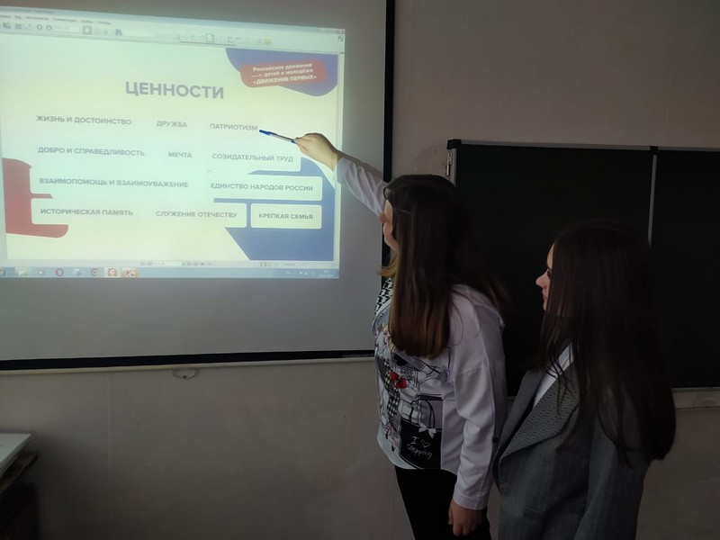 Оно объединяет все молодежные организации и движения страны, в том числе, в него вошли "Юнармия", "Большая перемена", "Российское движение школьников" и т.д. Ребята 1-9 классов узнали, что стратегия организации: "Быть с Россией, быть человеком, быть вместе, быть в движении, быть первыми", а цель объединения: качественное образование, участие в культурной жизни, волонтерство, сохранение исторической памяти, здоровый образ жизни, развитие экологических проектов, охрана природы, развитие туризма по России. Особое внимание уделили обсуждению главных ценностей, которые должны защищать члены организации. Среди них, есть и культурные, и нравственные, и исторические, и духовные: "Жизнь и достоинство", "Патриотизм", "Добро и справедливость", "Созидательный труд", "Крепкая семья" и другие.
