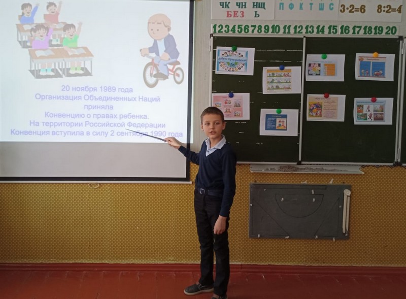 1 февраля в 1-9 классах прошли классные часы, беседы по темам «Азбука прав для детей» (1-4 кл. Ляушневич Т.Н., Ольховатова Н.Н., Калашникова А.А.), «Я-гражданин России» (5-6 кл. Морозова Е.А., Тупеко С.М., «От твоего выбора зависит твоя будущая жизнь» (7-9 кл. Елисеева В.А., Цыбулько Н.И., Федотова Е.В.).