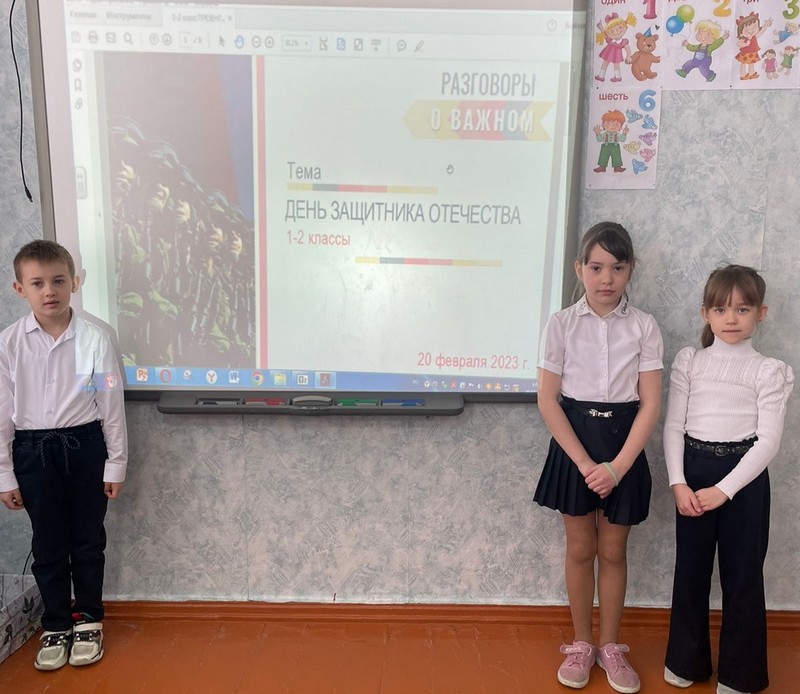 Темой занятия «Разговоры о важном» 20 февраля стал приближающийся праздник День Защитника Отечества. В ходе занятия в 1-2 классах, ребята обсудили, что означает слово «защитник», посмотрели видеоматериал, выполнили интерактивное задание «Вооружённые силы России».