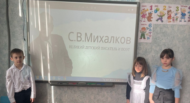 Учителя рассказали, что писатель писал не только веселые детские стихи, но и в дни Великой Отечественной войны Михалков был военным писателем-корреспондентом. Учащиеся 9 класса в ходе выполнения интерактивного задания «Творчество С. Михалкова» узнали больше фактов о творчестве Сергея Михалкова.