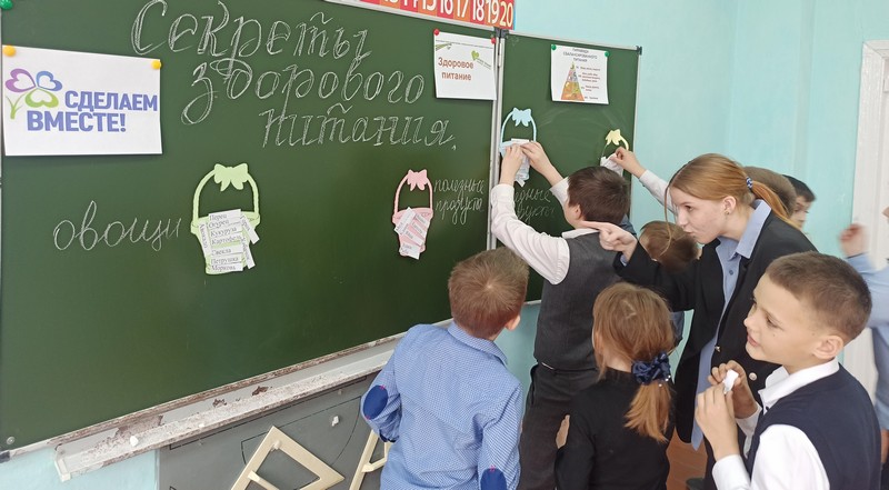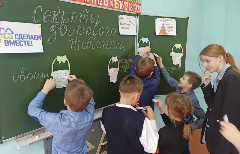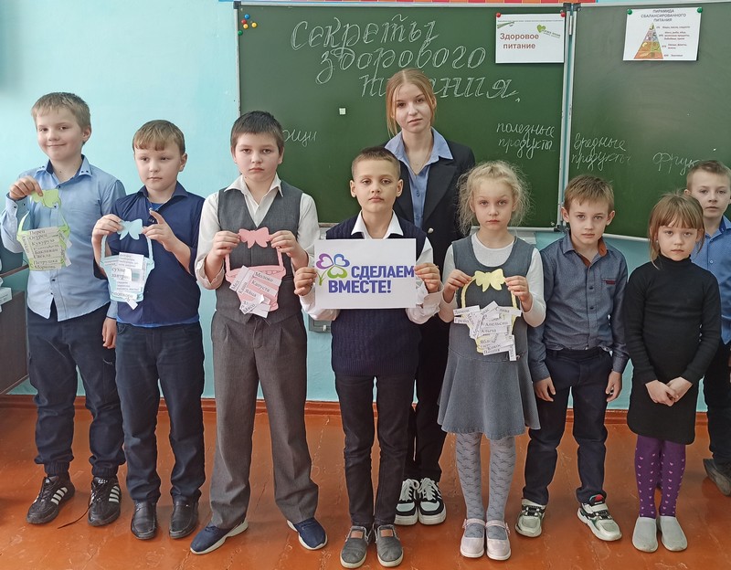 «Секретами здорового питания» 15 марта с ребятами 1-4 классов поделилась учащаяся 9- класса Цыбулько Софья. Участвуя в Международной социальной акции «Здоровое питание школьника» в рамках движения «Сделаем вместе!», Софья провела интересное, полезное и творческое мероприятие о правильном и здоровом питании.