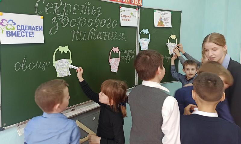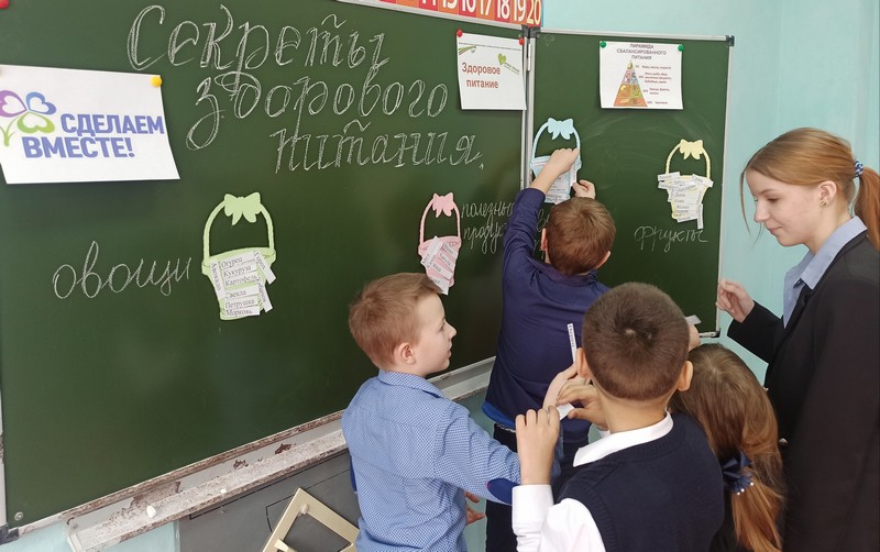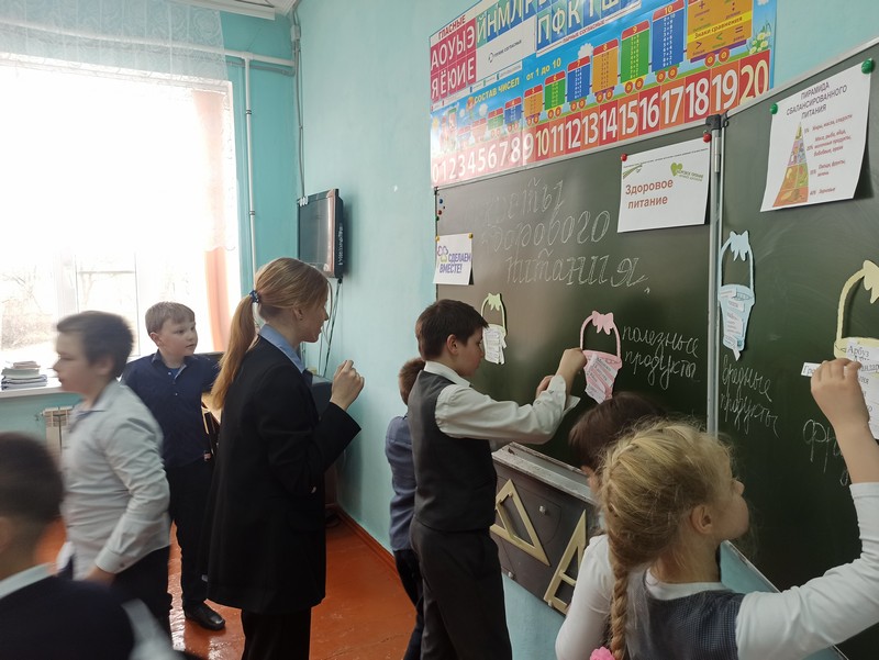 Чтобы доказать ребятам, что правильное питание школьника — залог его здоровья, успеваемости и должно отвечать всем потребностям юного организма, Софья подготовила следующие задания: разгадать кроссворд, раскрасить фрукты, овощи, распределить в корзинки продукты. В завершении акции учащиеся пришли к выводу, что для сохранения здоровья одним из главных критериев является правильное питание ,что нужно есть полезную, богатую витаминами еду и как можно реже употреблять «фаст-фуд».