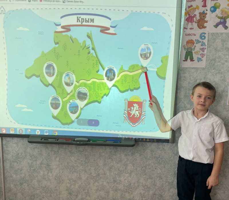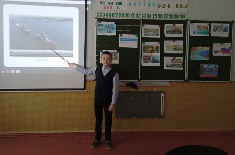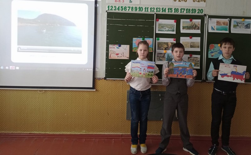 Ребята с интересом слушали информацию об истории Крыма, о событиях, произошедших в марте 2014 года, о достопримечательностях и природе полуострова, отвечали на вопросы.
