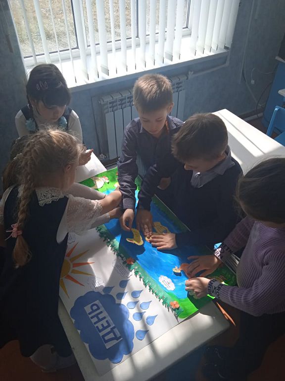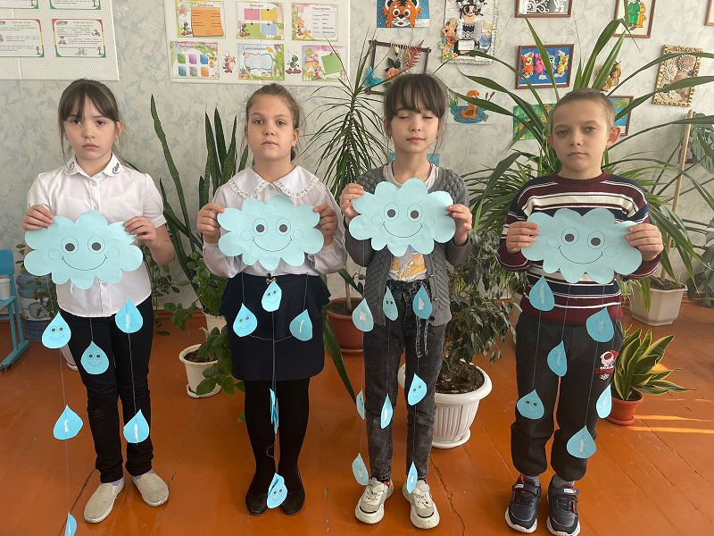 Ребята 1 класса изготовили стенгазету с загадками о воде, а учащиеся 2-4 классов сделали поделку- тучку. По окончанию эко-урока школьниками был сделан вывод, что вода - это огромный дар природы, который мы все должны защищать и беречь. Стенгазету и тучек разместили на стенде для всеобщего обозрения.
