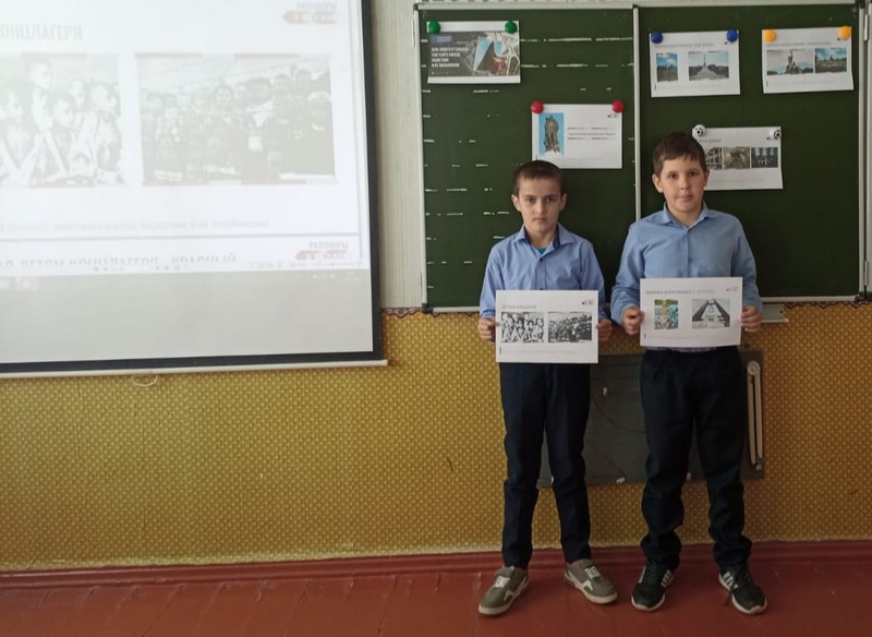 Учащимся рассказали, что означает слово «геноцид». К сожалению, есть в истории примеры, когда уничтожаются сразу несколько народов одного большого многонационального государства. Уничтожение людей может осуществляться не только массовыми убийствами. Угон в рабство или ссылка в концлагерь, непосильный труд, голод, нанесение телесных повреждений — все это акты геноцида. В ходе беседы с ребятами обсуждались актуальные проблемы современного мира. Учащиеся вспомнили страницу истории Великой Отечественной войны – о подвиге советского солдата, который, рискуя жизнью, спас в Берлине во время боя немецкую девочку. Использовалась информация, рассказывающая о детских концлагерях, созданных фашистами на оккупированных территориях СССР. Ребят познакомили с памятниками и мемориалами, посвященными жертвам фашизма.