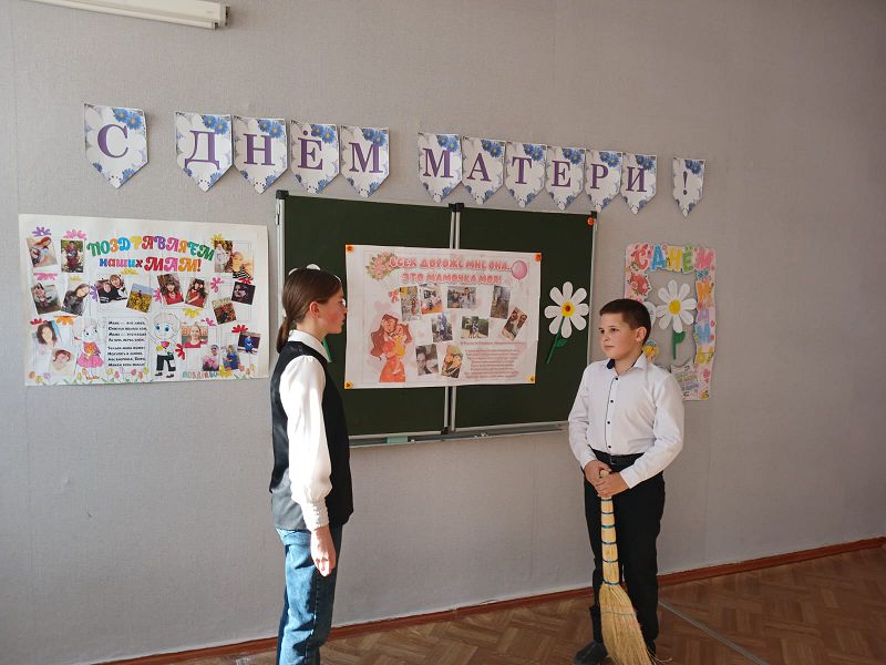 В завершении родительского педагогического всеобуча, коллектив учителей и учащихся школы поздравили всех мам с наступающим праздником «Днем матери» и показали небольшой праздничный концерт.