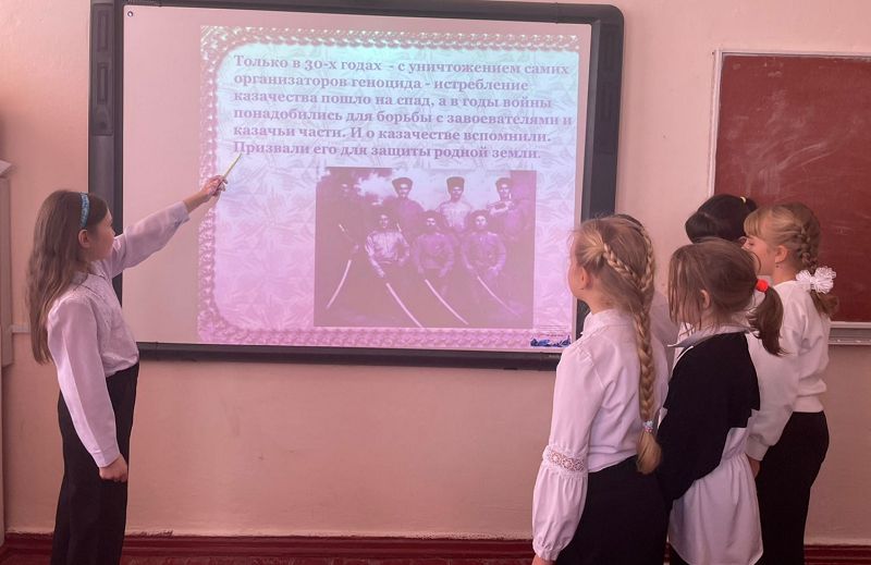 24 января в школе прошли классные часы посвященные дню памяти жертв репрессий казачества. Классные руководители рассказали об основных этапах расказачивания и его трагичных последствиях. Ребята узнали о роли казачества в истории России, о традициях и обычаях казаков. А также о том, как жестоко был разрушен веками складывающийся уклад их жизни, их этническое единство.