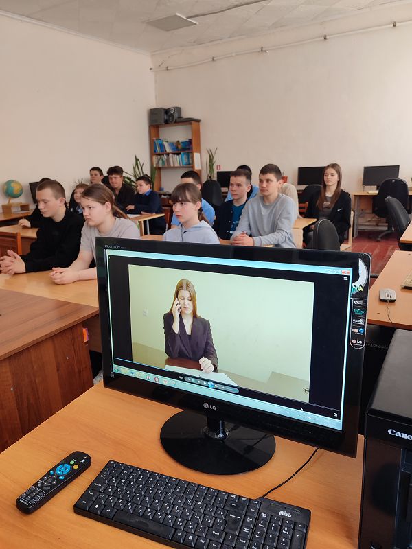 Морозова Е.А. зам.директора по ВР рассказала, как можно защитить себя и своих близких от действий мошенников. Также в ходе мероприятия учащимся был показан видеоролик об IT мошенничестве.