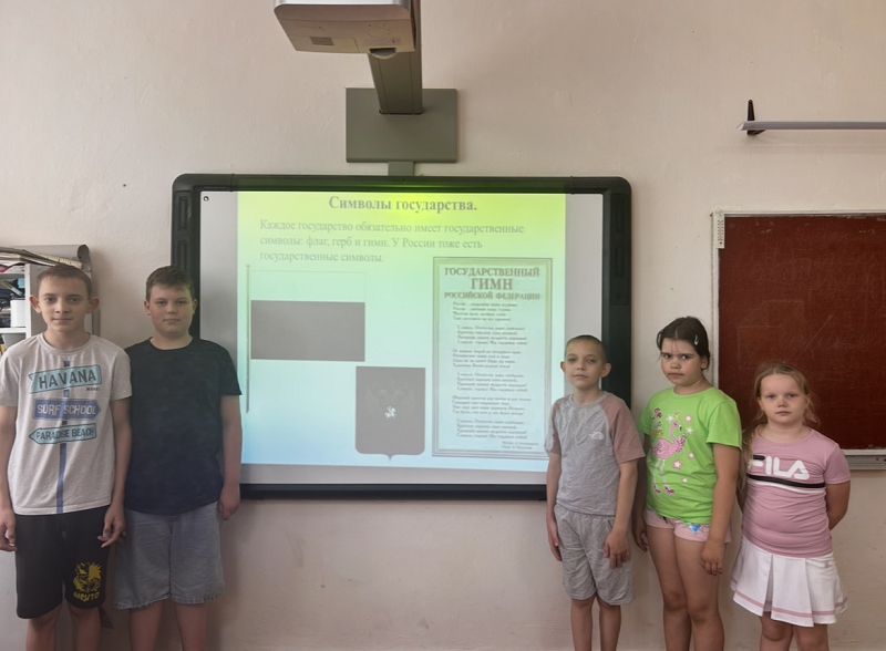 После обеда была проведена беседа с презентацией «Символы России». Далее ребята узнали о своей стране много интересного из видеофильма «Моя Россия – моя страна». После этого все дружно повторили правила дорожного движения, ответив на вопросы викторины «Зеленый огонек». Этот день был еще одним шагом к незабываемому летнему отдыху в лагере.