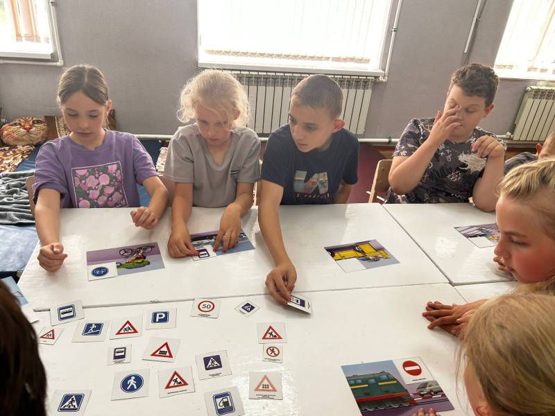 После обеда воспитатели провели интерактивную игру по ПДД «Не торопись, на знак оглянись», в ходе которого ребята отгадывали загадки и находили правильные ответы по иллюстрациям. Затем участвовали в конкурсах «Светофор», «Азбука пешехода», «Собери знаки». При помощи игр ребята вспомнили правила дорожного движения, дорожные знаки, номера экстренных служб.