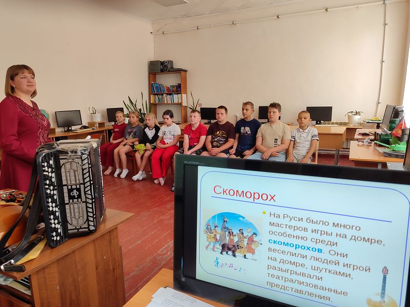 Музыкальный день начался с проведения мероприятия «Музыка в жизни человека». Работники Дома культуры Денисенко Л.Г., Федотова Н.Н, Голоборщева И.В. рассказали ребятам о том, что музыка - это удивительное и уникальное творение искусства. В ходе мероприятия ребята вспоминали названия музыкальных инструментов, отвечали на вопросы, пели частушки. А в завершении мероприятия все оркестром исполнили композицию на музыкальных инструментах.