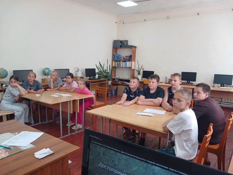 После сытного обеда ребята немного отдохнули, и их ждало новое интересное мероприятие – интеллектуальный марафон «Знай свой край родной». Ребята выполняли задания, связанные с историей Донского края, смотрели видеоматериалы о Ростовской области и ее достопримечательностях.