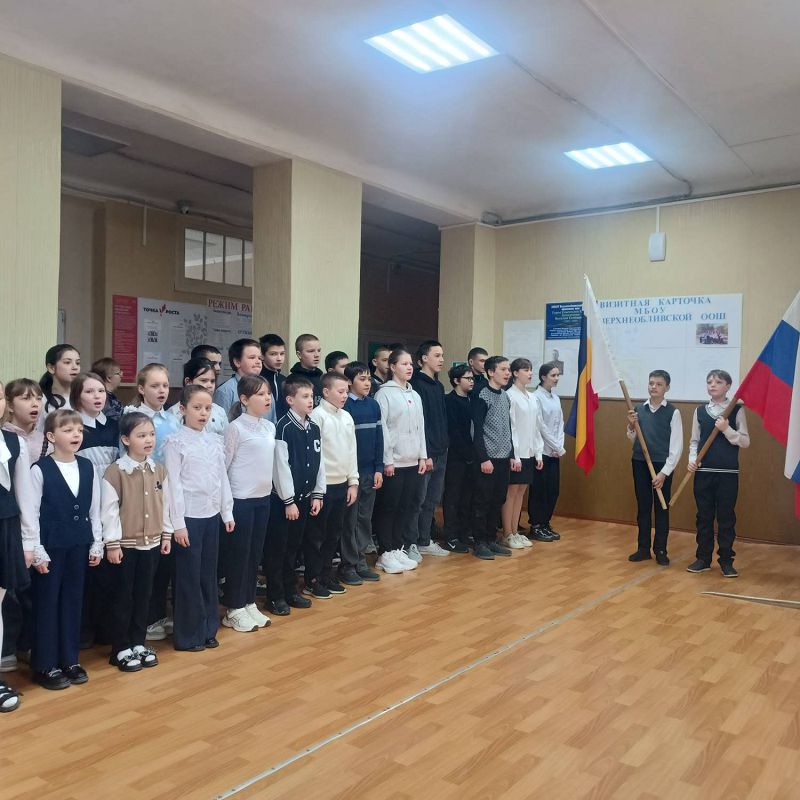 Утро понедельника 16 марта в школе традиционно началось с торжественной линейки, церемонии выноса флага и исполнения гимна Российской Федерации.