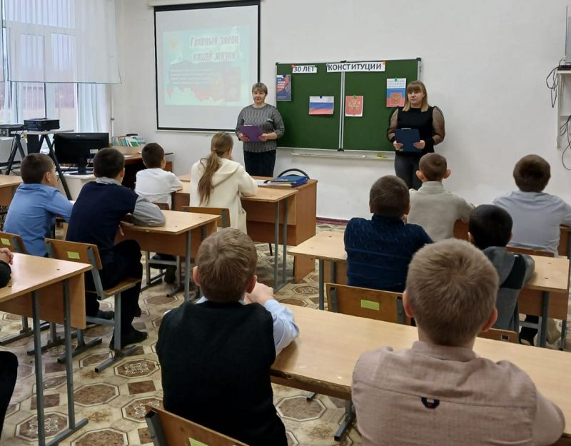 Внеурочное занятие «Разговоры о важном» для учащихся 4-6 классов 27 ноября было посвящено Дню Конституции. Ребята узнали, что 12 декабря 2023 года день рождения Конституции-30 лет. На мероприятие была приглашена представитель администрации Верхнеобливского сельского поселения Калашникова И.А. - секретарь ПО.