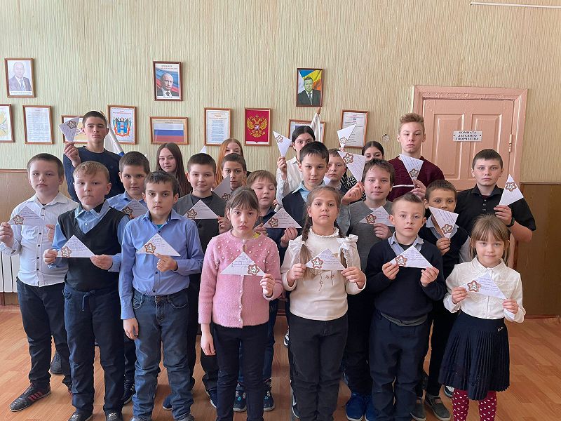 Учащиеся с 1 по 9 класс приняли участие в акции "Письмо солдату". Ребята написали поздравительные письма солдатам- участникам в специальной военной операции.