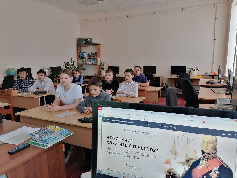 После традиционной линейки прошло внеурочное занятие тз цикла «Разговоры о важном», которое посвящено теме «Что значит служить Отечеству? 280 лет со дня рождения Ф. Ушакова». Занятие было направлено на развитие у обучающихся представлений о гражданском долге и служении родной стране, основываясь на примерах жизни и подвига адмирала Ушакова, а также святителя Тихона.