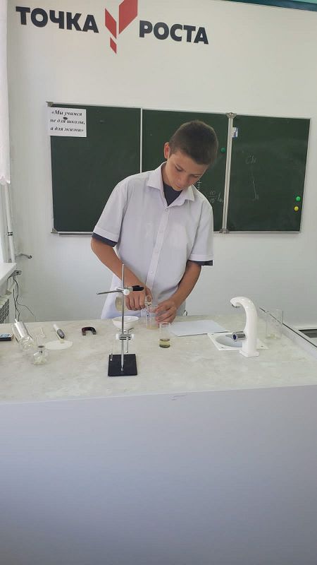В нашей школе на базе Центра "Точка Роста" продолжается реализация общеобразовательных программ основного общего образования естественнонаучного цикла с использованием стандартного комплекта оборудования, расходных материалов, средств обучения и воспитания.